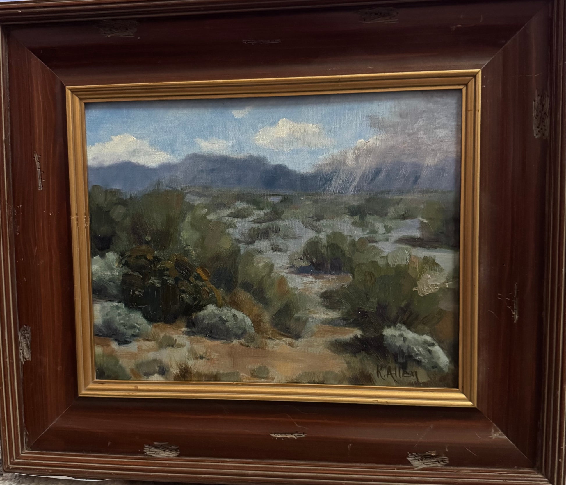 11 x 14 linen canvas Board framed in a solid wood frame.
