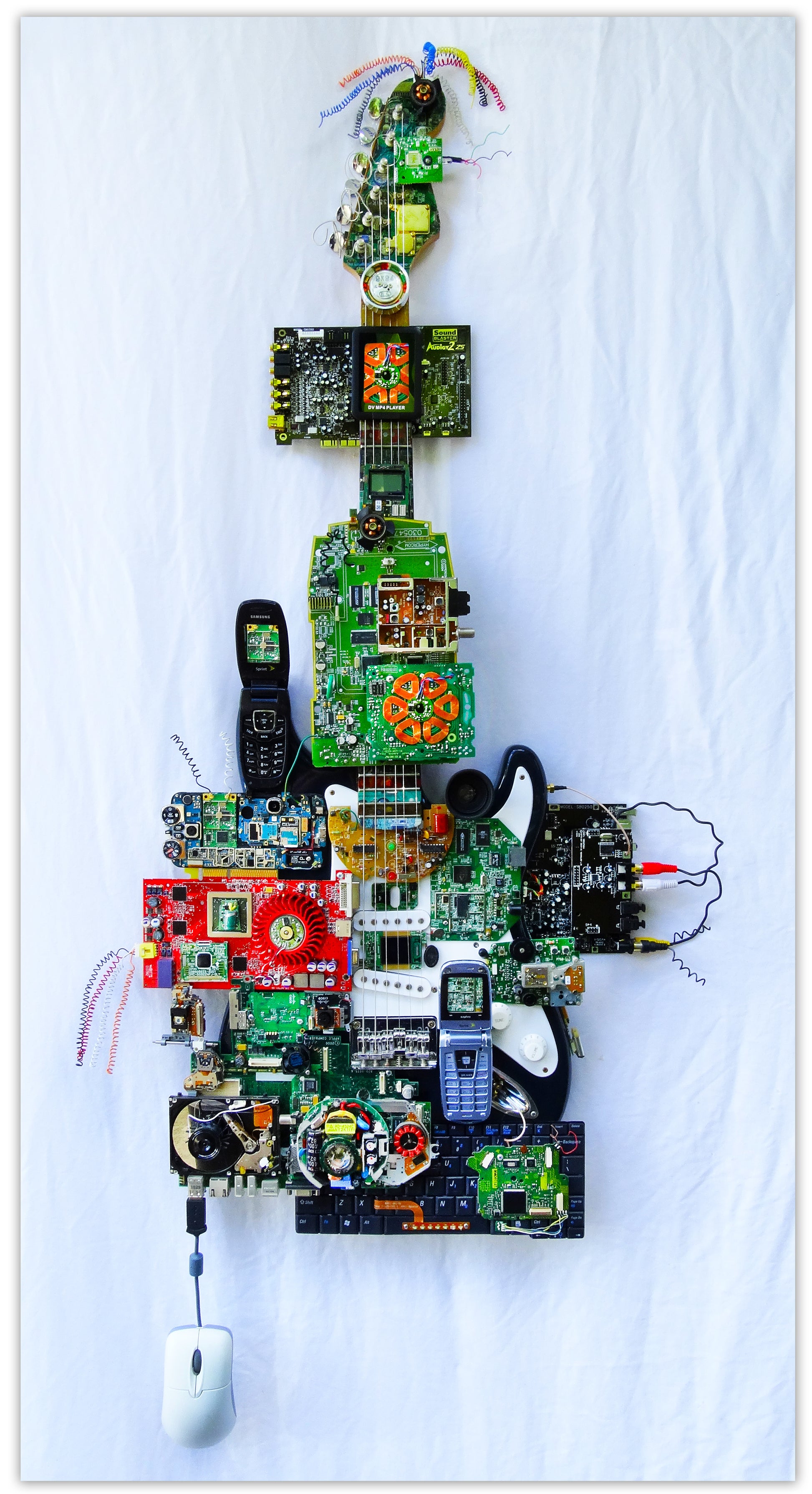 Las placas de circuito impreso se fotografiaron, se crearon en Photoshop, se imprimieron en papel adhesivo y se aplicaron como calcomanías, y luego se les aplicó laca.
