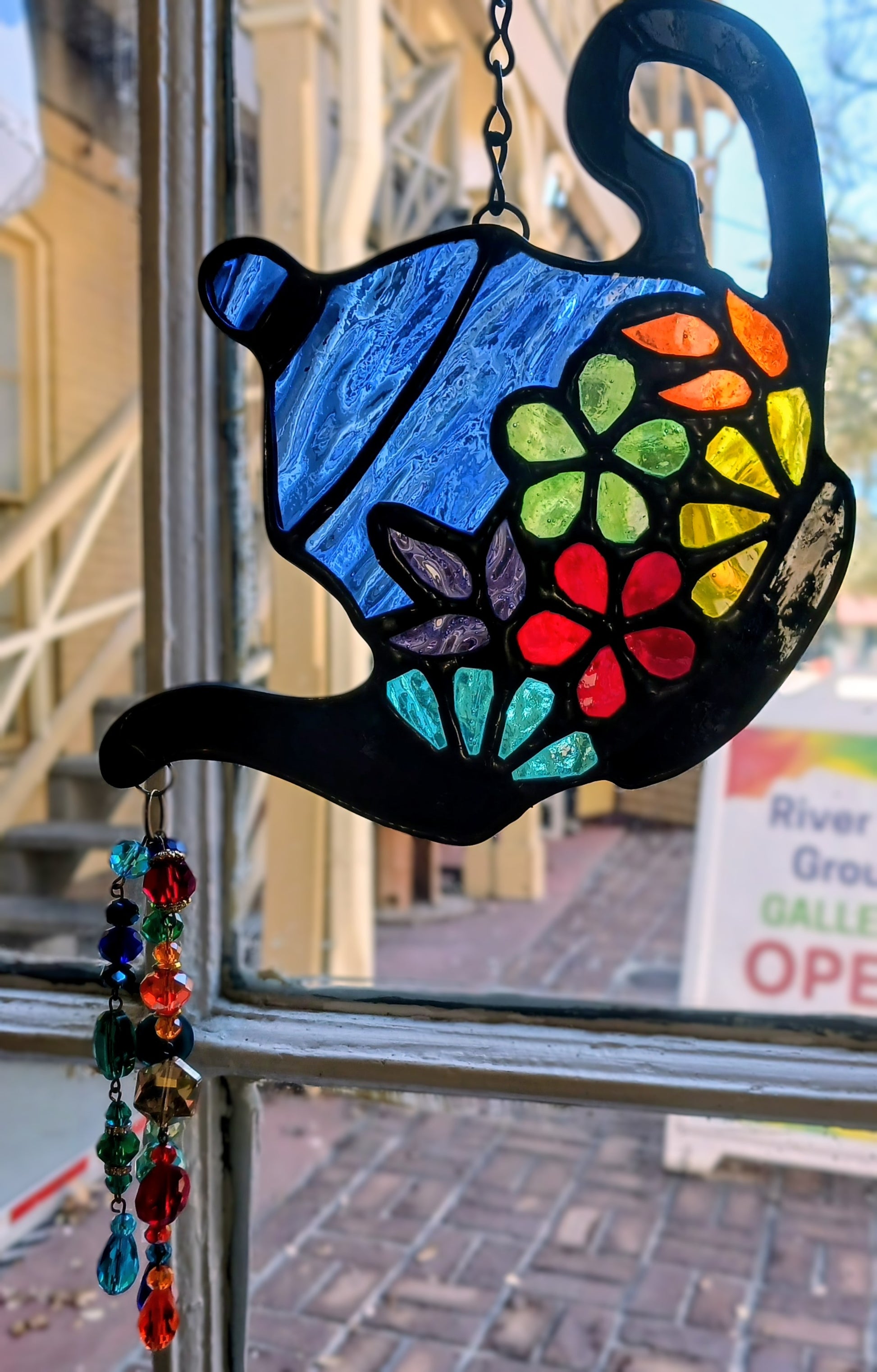 Multi color stained glass tea pot with crystal beads