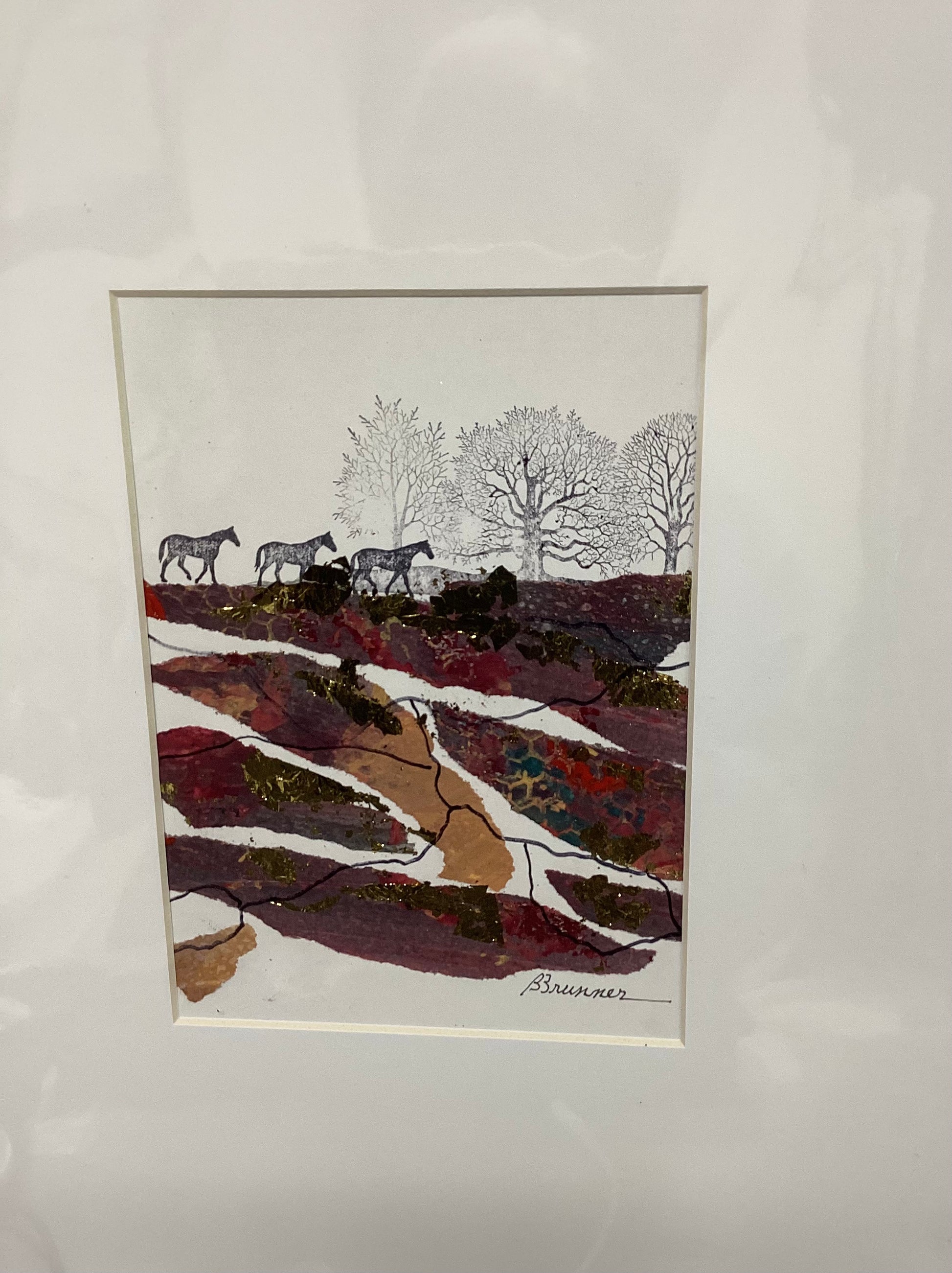Collage de técnica mixta en passepartout de 11 x 14 pulgadas para marco estándar