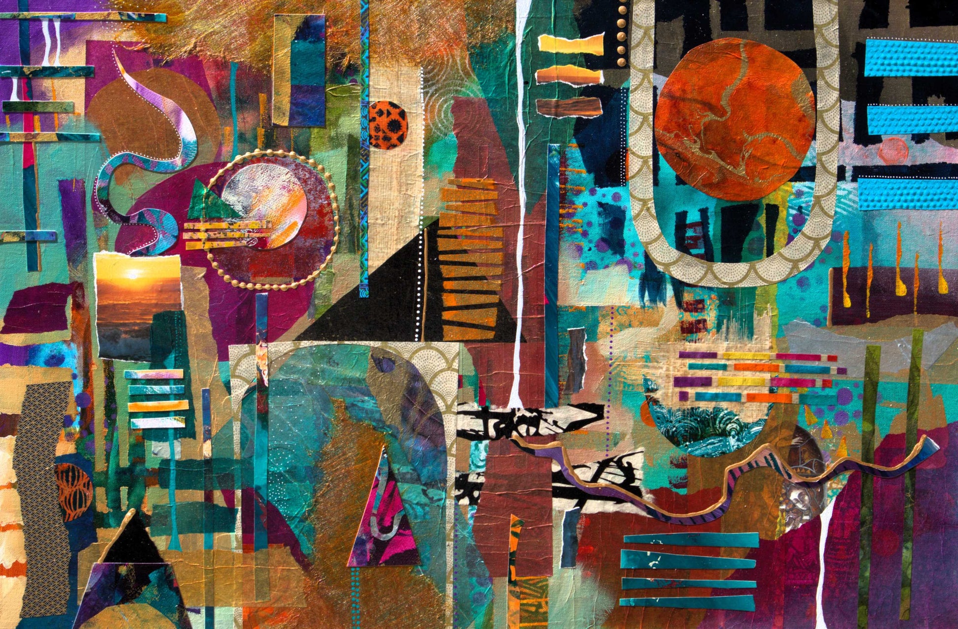 Collage de técnica mixta de 24 x 36 pulgadas
