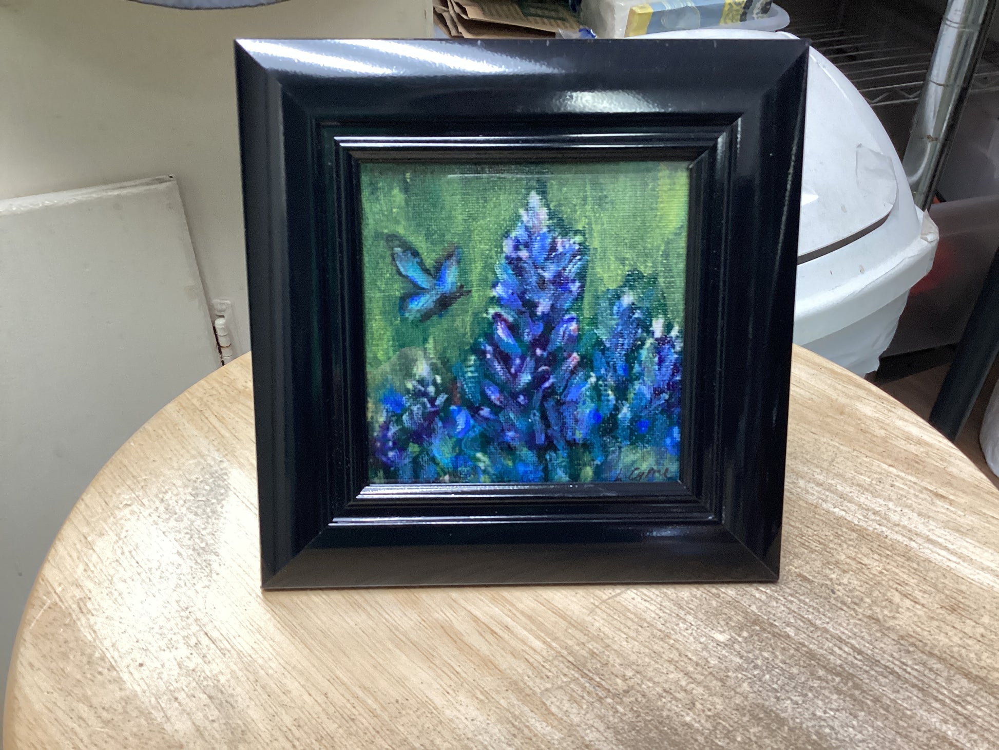 Bluebonnet with Butterfly Embellished Canvas Print framed